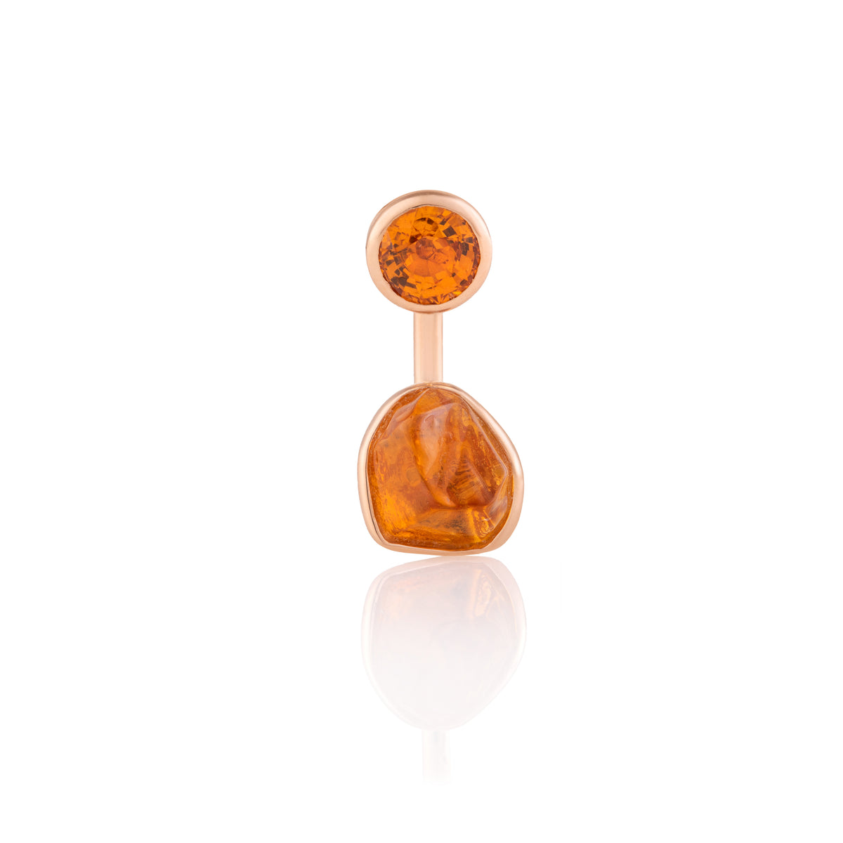 This stylish Elemental Double Earring Yellow and Yellow is set in 18-karat pink gold with  rough citrine and yellow sapphire.
