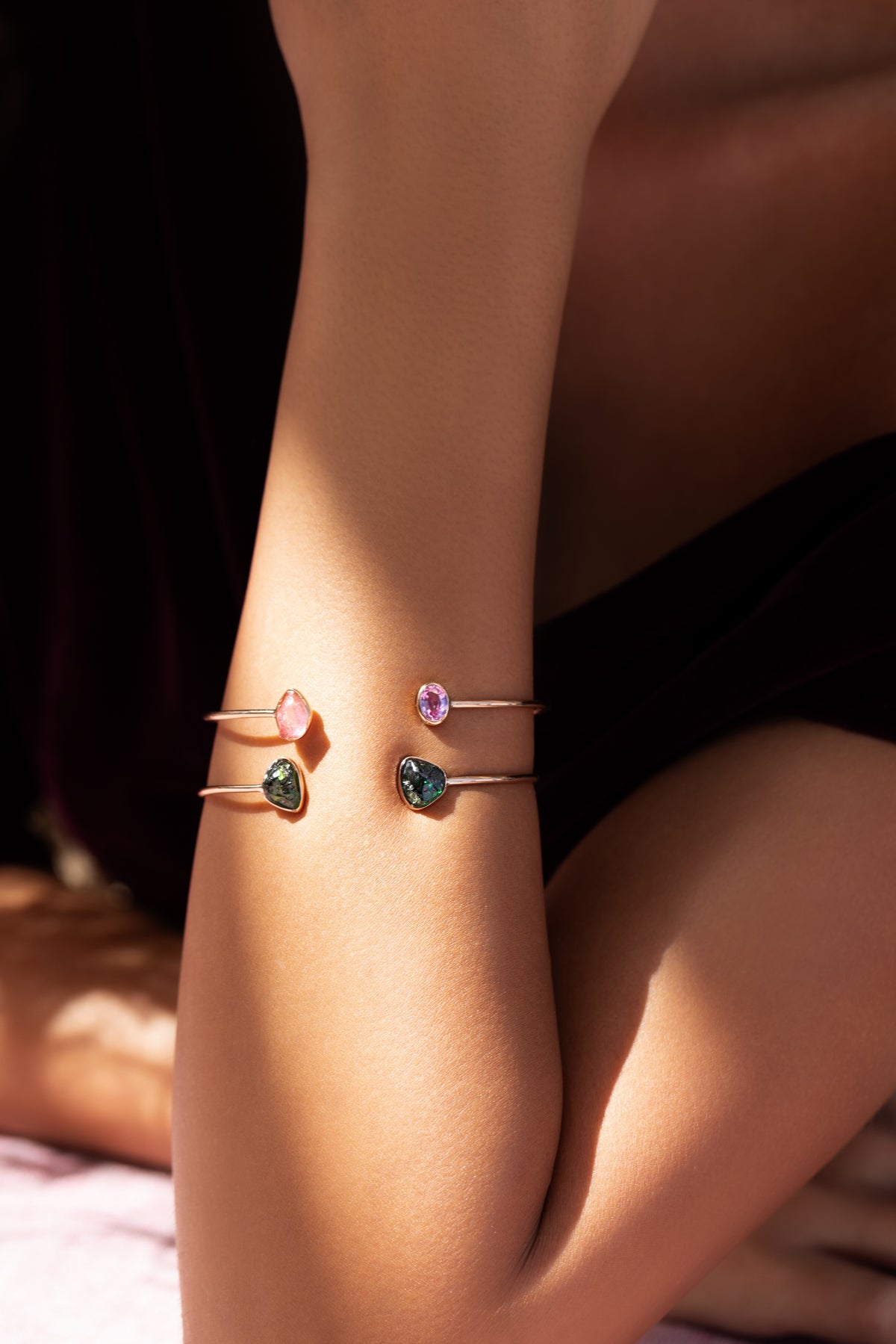 This beautiful Elemental Cuff Pink is set in 18-karat pink gold with rough pink tourmaline and pink sapphire.
