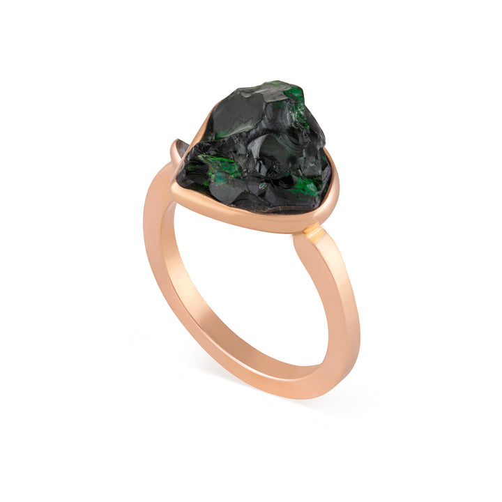 This simple Genesis Small Ring Green is set in 18-karat pink gold with a rough green tourmaline.