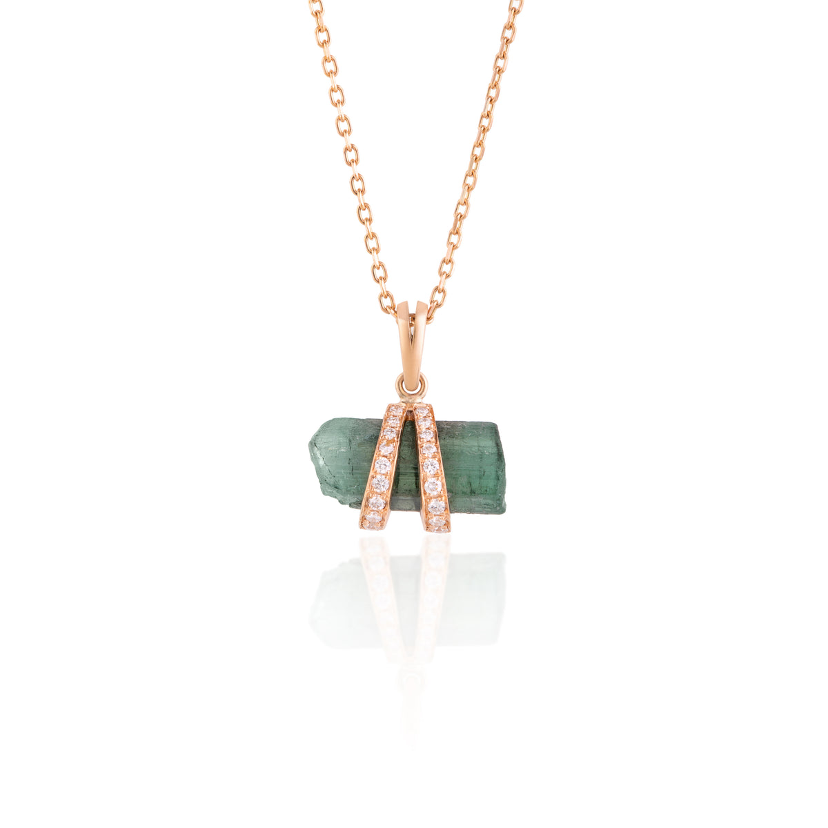 This gorgeous Elemental Small Pendant Blue is set in 18-karat pink gold with rough blue tourmaline and white diamonds.