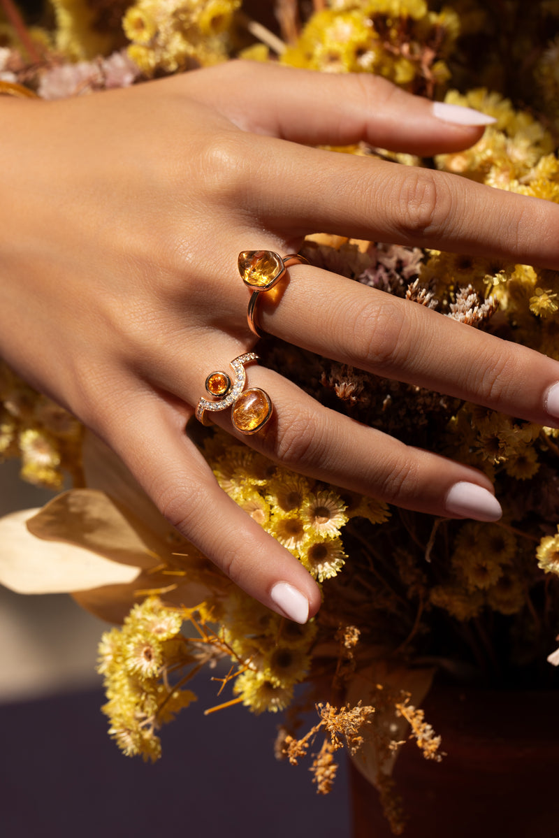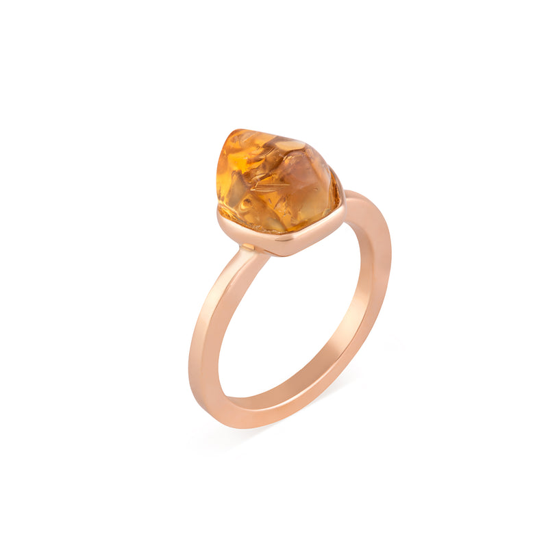 This charming Elemental Small Ring Yellow is set in 18-karat pink gold with rough citrine.