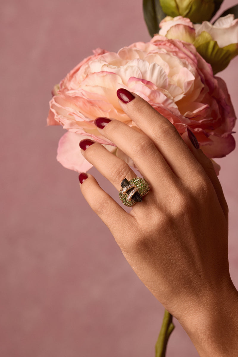 Lunar Bombee Ring Tourmaline & Tsavorite