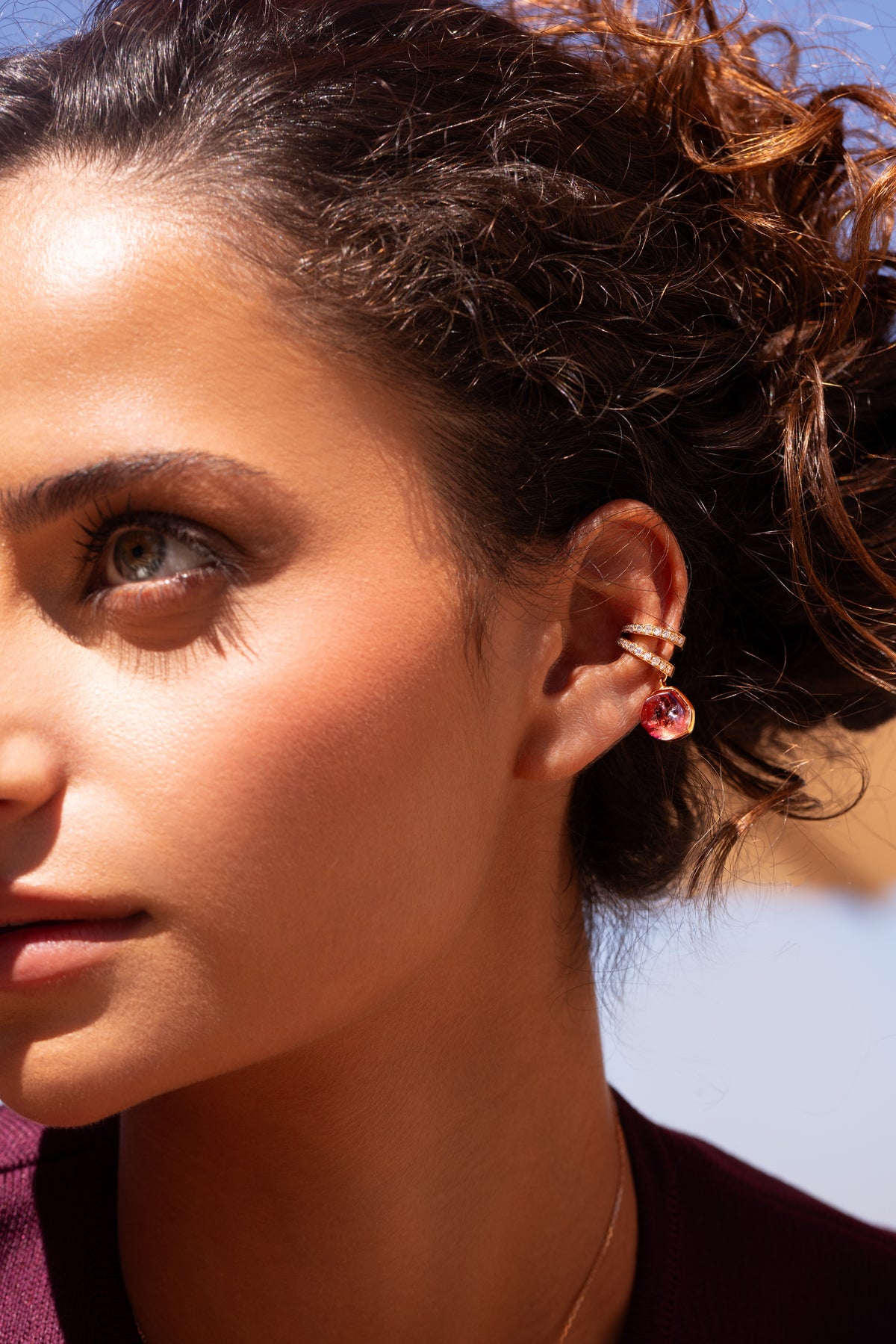 This beautiful Ear Cuff Watermelon is set in 18-karat pink gold with rough watermelon tourmaline and white diamonds.