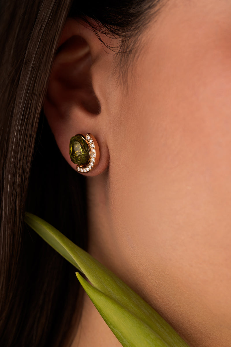 This beautiful Stud Green is set in 18-karat pink gold with rough peridot and white diamonds.